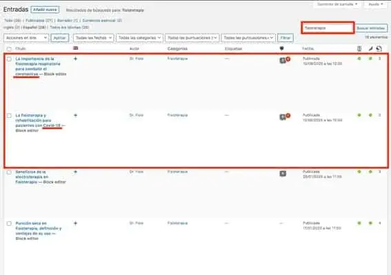 Si usas Wordpress o cualquier otro CMS que contenga un buscador interno (backend) de los contenidos que has generado a lo largo del tiempo podrás detectar que páginas están haciendo uso de cualquier término.