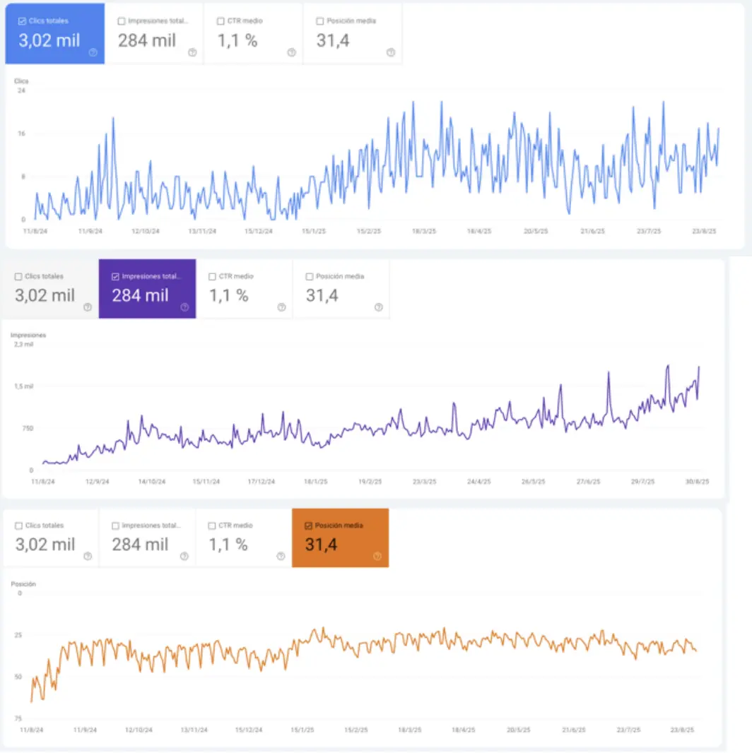 - Indexación, redirecciones y limpieza publicadas de forma escalonada y seguimiento de salud técnica.