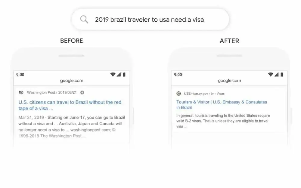 Las búsquedas conversacionales son una de las cuestiones claves en esta nueva técnica aplicada al algoritmo. Consultas más largas o en las que las preposiciones “a” o “para” están presente, podrán ser comprendidas para determinar el contexto de las palabras usadas en la consulta.