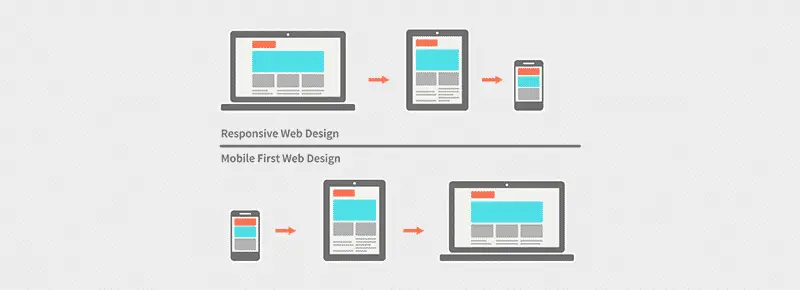 Se diseña desde el escritorio o PC y se va adaptando a los diferentes tamaños de pantalla. Se crea una versión completa desde el principio siendo condicionando algunas funciones o contenidos posteriormente para su correcta visualización en móvil.