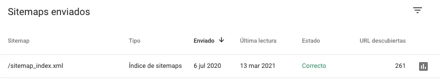 Como hemos comentado, Search Console tiene un informe de sitemaps que proporciona mucha información útil sobre el estado del mapa del sitio y las páginas enumeradas en él.