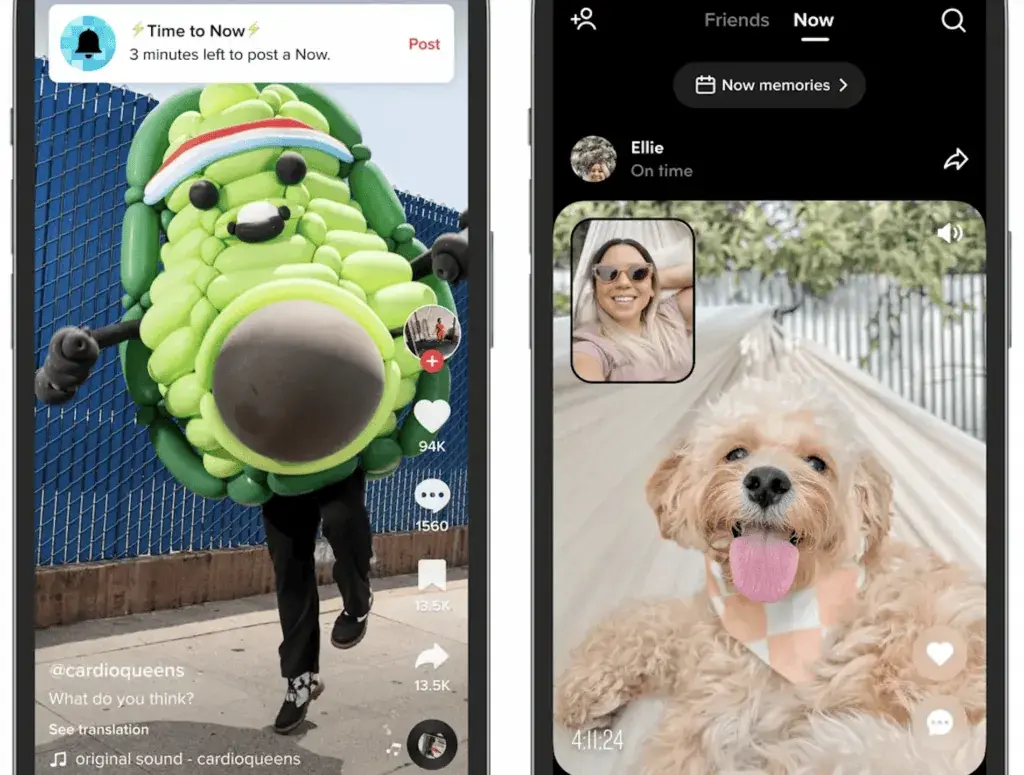En algunos mercados TikTok Now se presenta como una pestaña mas de la app, mientras que en otros, se puede usar a través de una aplicación independiente de TikTok. Este contenido se publica directamente en la red social principal, pero que a su vez te lleva a la otra aplicación.