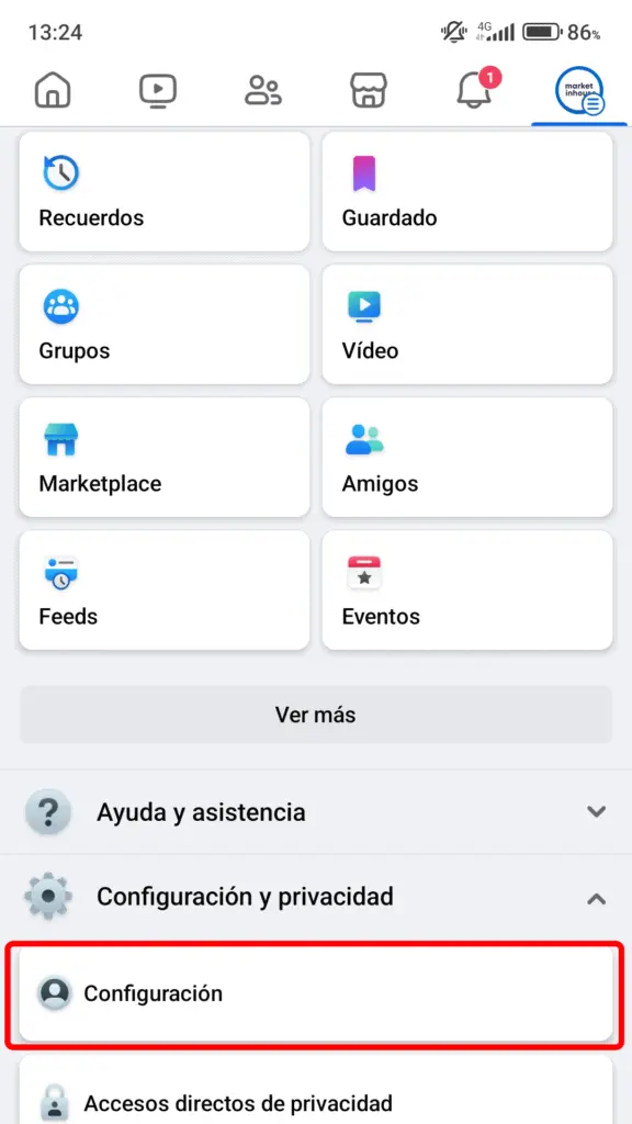 Paso #1. Entra en la cuenta con la que quieres conseguir la insignia azul y ve a Configuración y Privacidad.