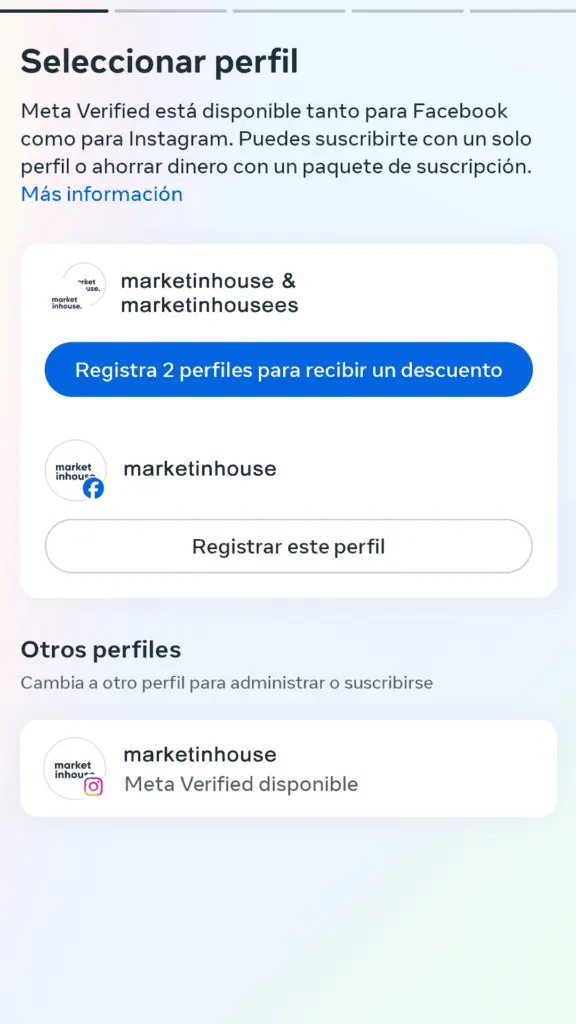 No, a pesar de que si los verificas juntos podrás tener un precio con descuento, son dos verificaciones diferentes, por lo que son dos pagos independientes, mensuales y no vinculantes; es decir, suscribirte a Meta Verified para Instagram no te dará la verificación en Facebook.