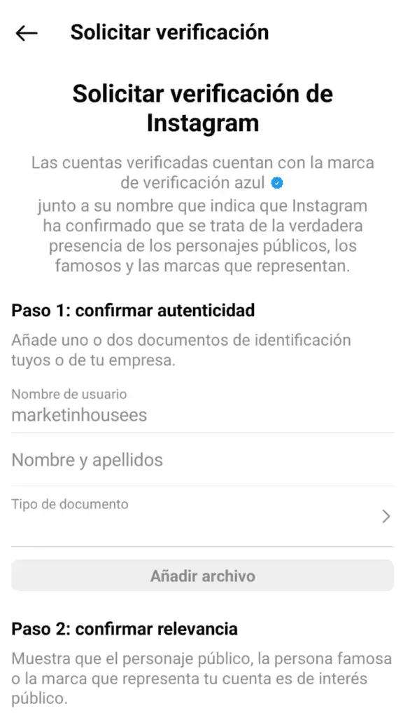 Paso #2. Rellena este formulario, incluyendo información muy similar a la de Instagram.